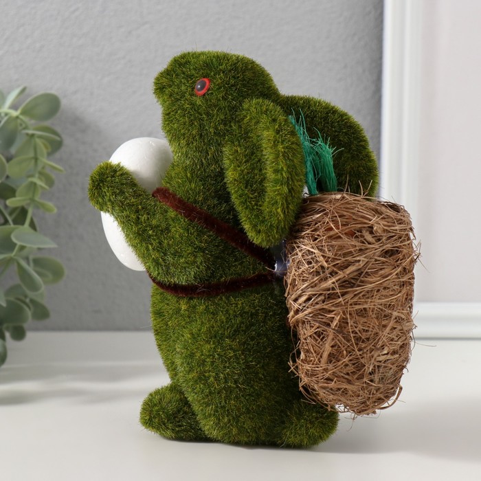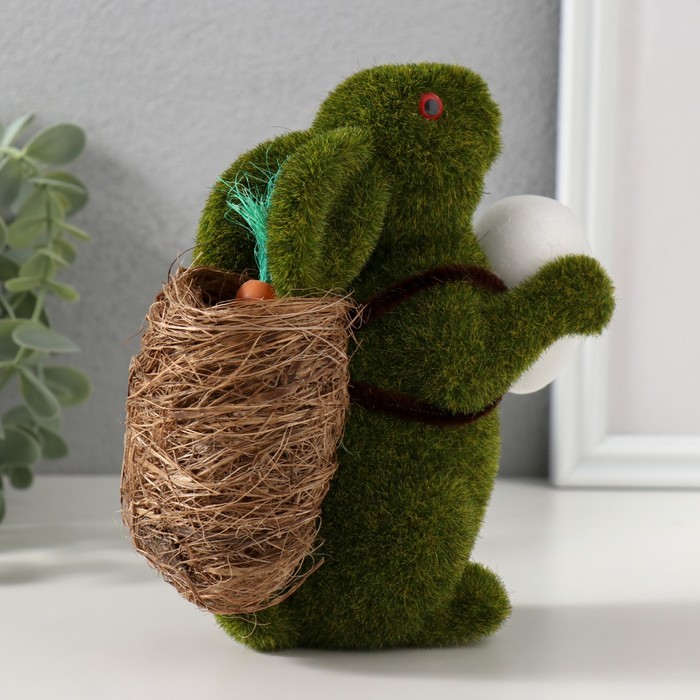 Фигурка пенопласт «Кролик зелёный с яичком и корзиной с морковью», 15×7×15.5 см