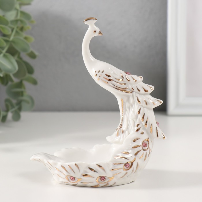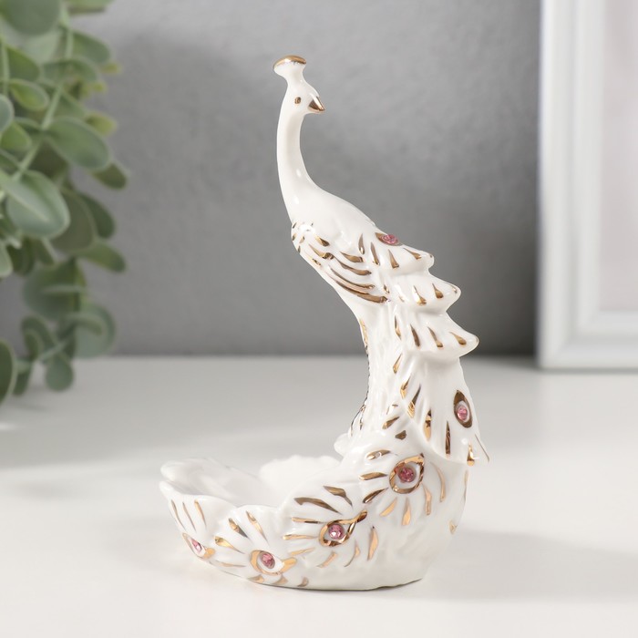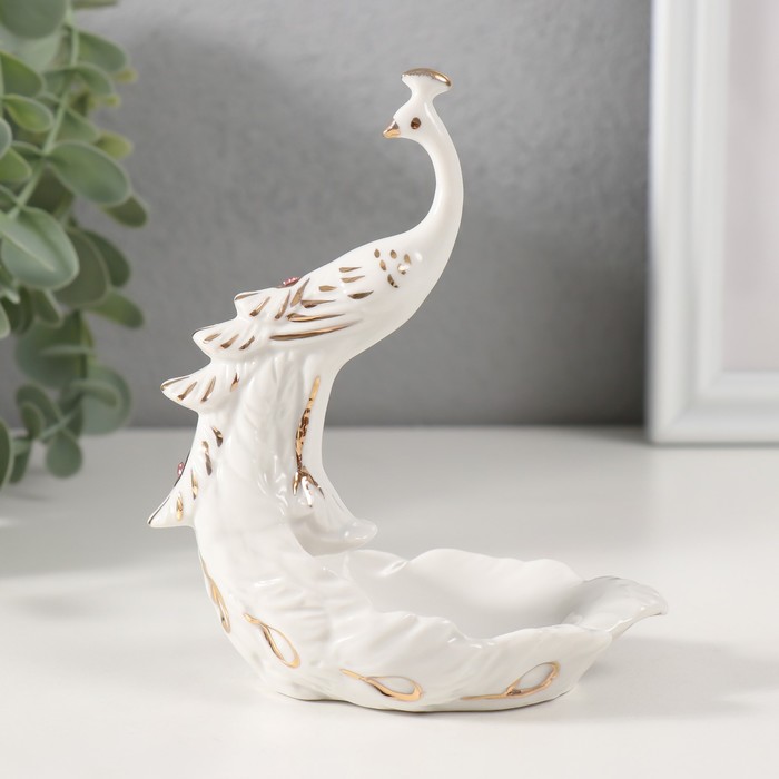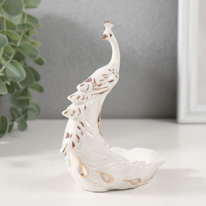 Фигурка-подставка для мелочей керамика «Пава белая», с золотом, стразы