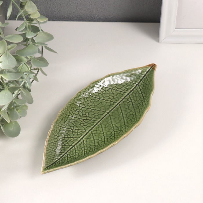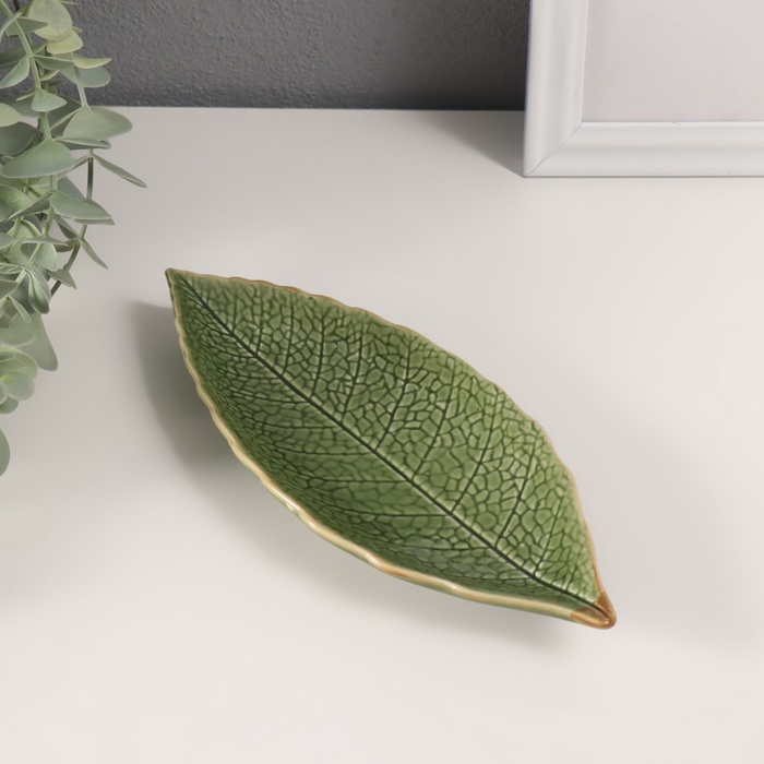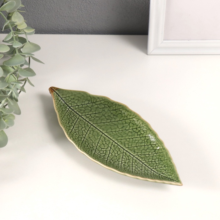 Фигурка - подставка для мелочей «Лесной листочек», керамика, зелёный, 20.5×8.5×2 см