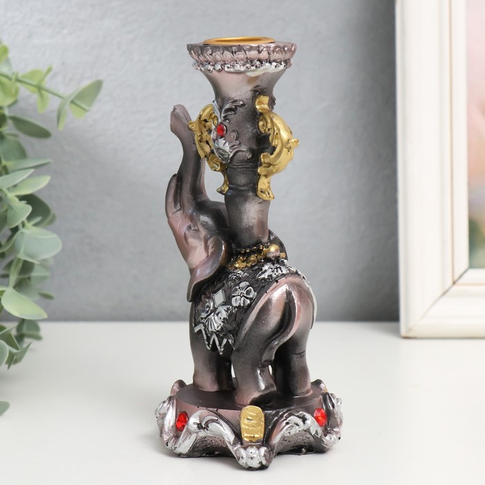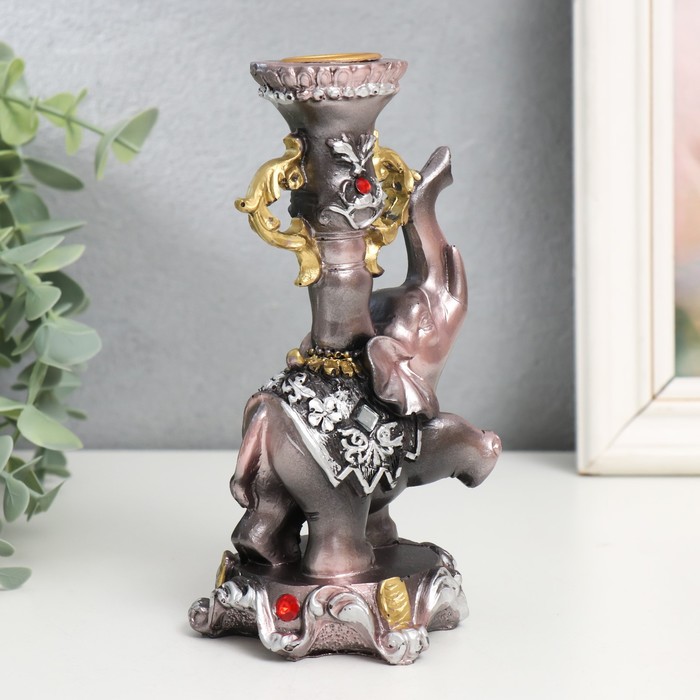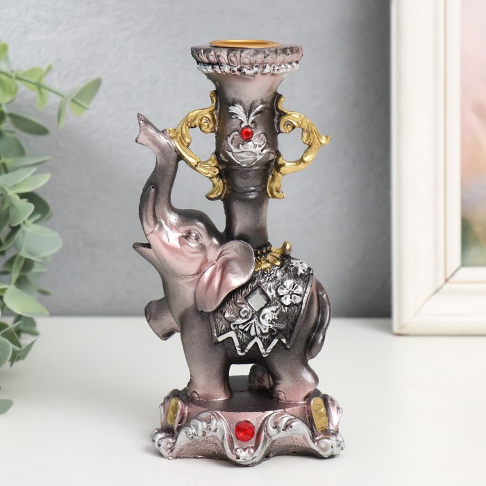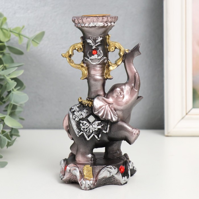 Фигурка-подсвечник полистоун «Слон на пьедестале в попоне с цветами», 15.5×8×7.5 см