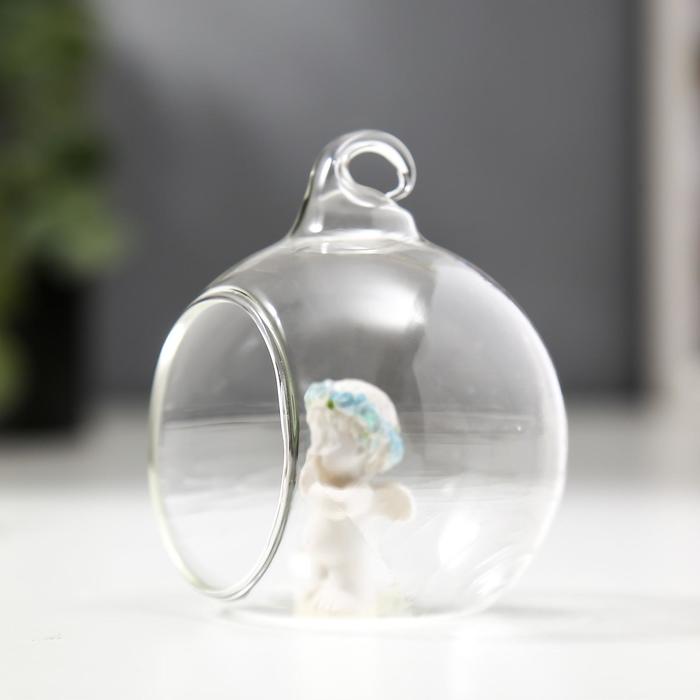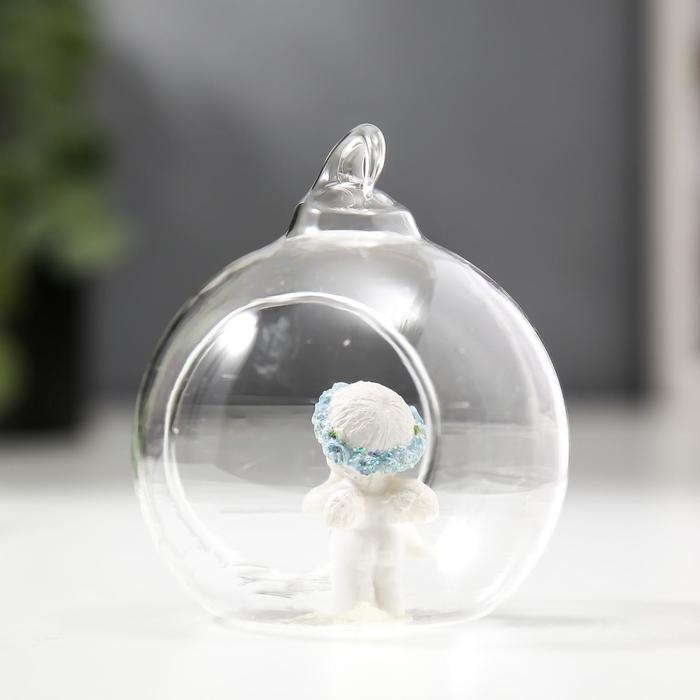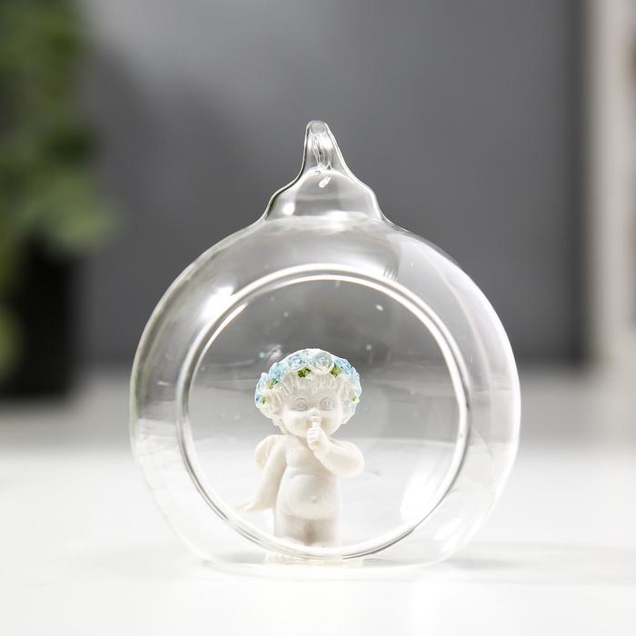 Фигурка - подвеска полистоун «Ангелок в шаре», ёлочная игрушка, голубой веночек, 6.7×5.5×6.2 см
