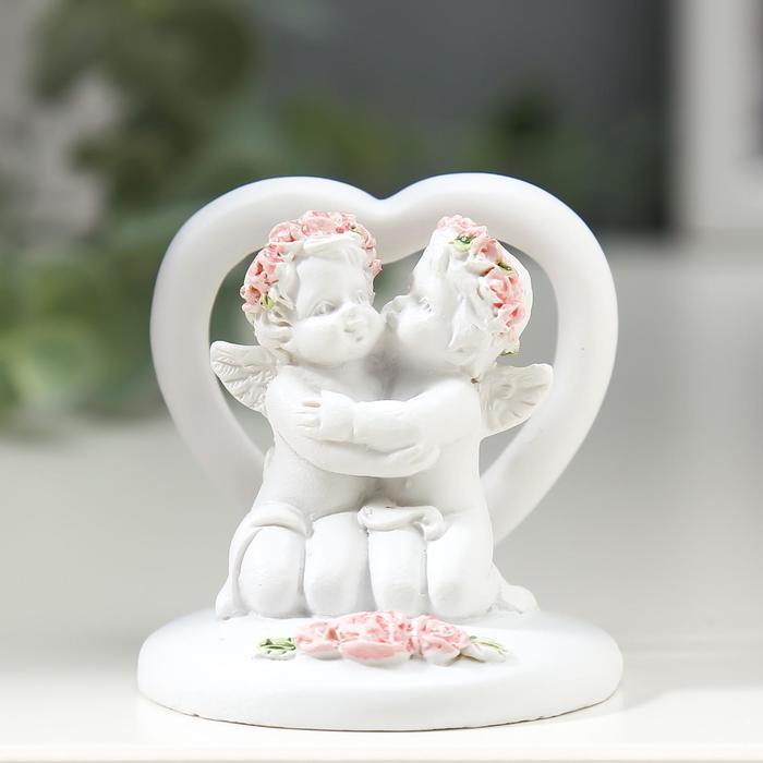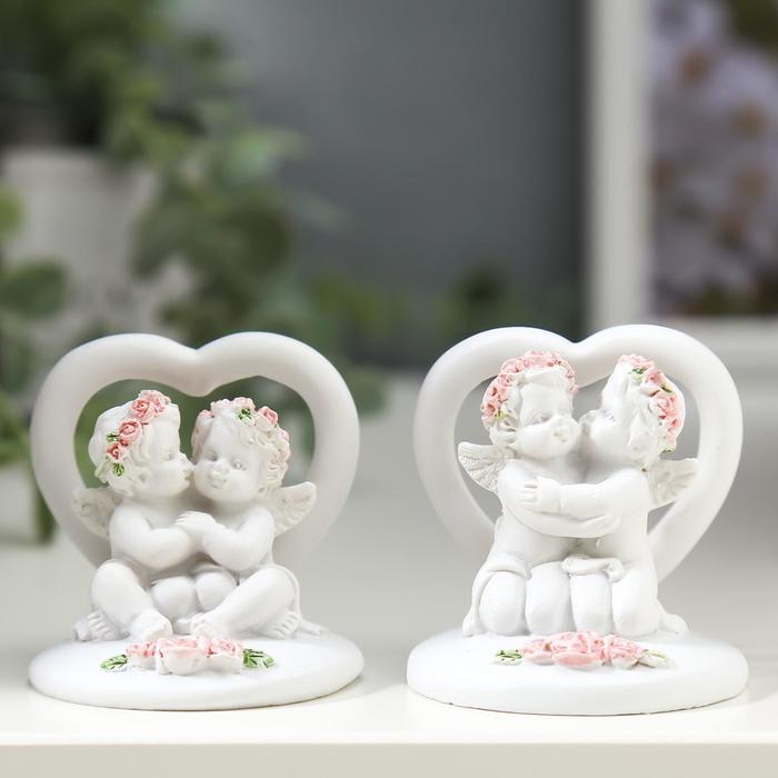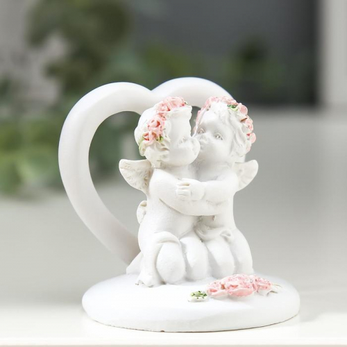 Фигурка полистоун «2 ангелочка у сердца в венке из роз», 5×5×5 см, МИКС