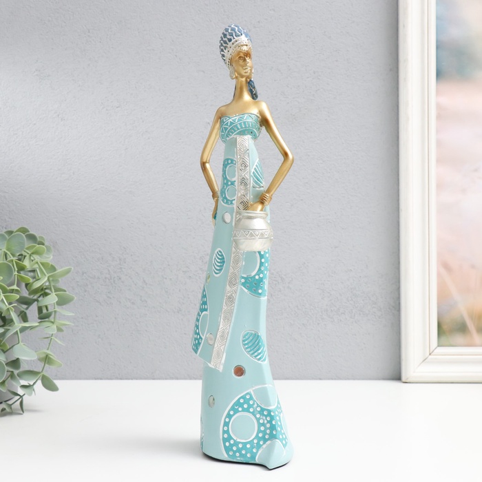 Фигурка полистоун «Африка - Королева пустыни, с горшочком», золото с голубым, 10×7×32.5 см