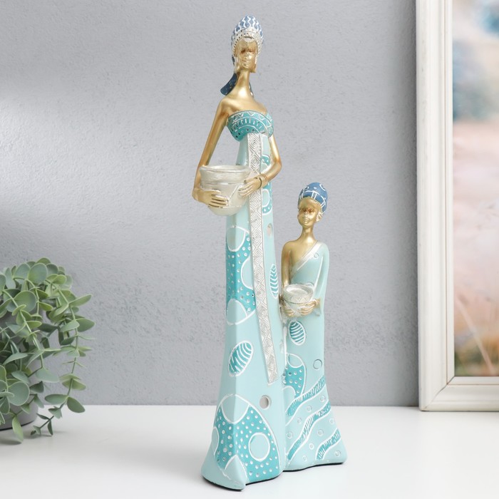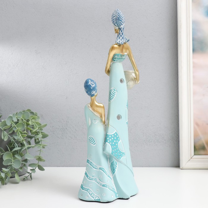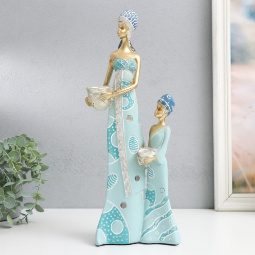Фигурка полистоун «Африка - Мать и дочь, с глиняной посудой», золото с голубым, 15×8.5×36.5 см