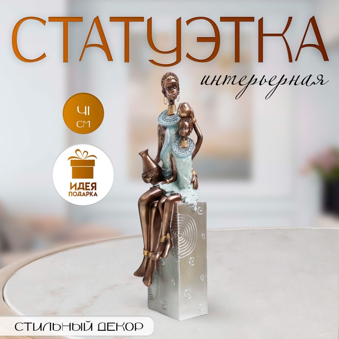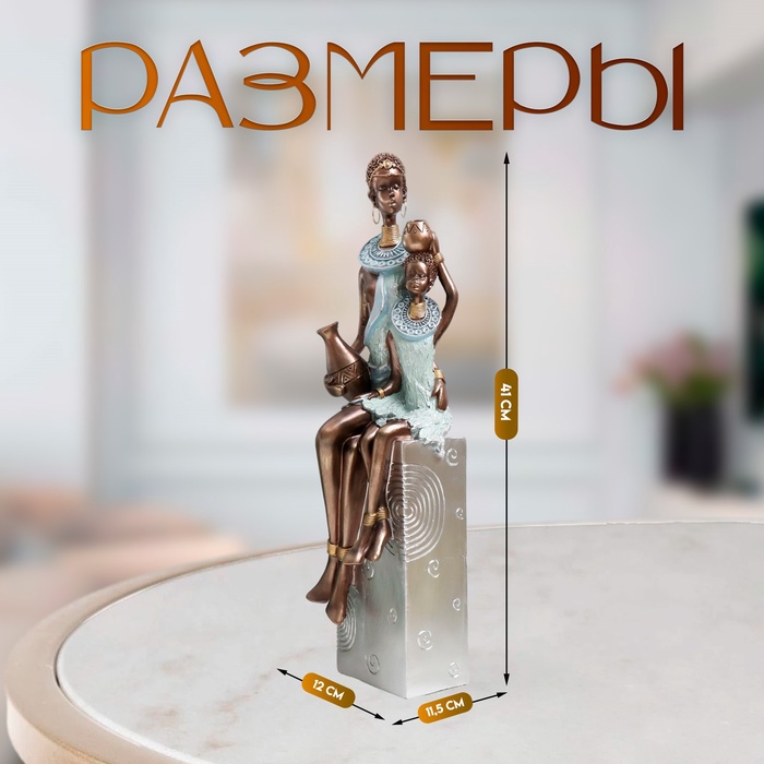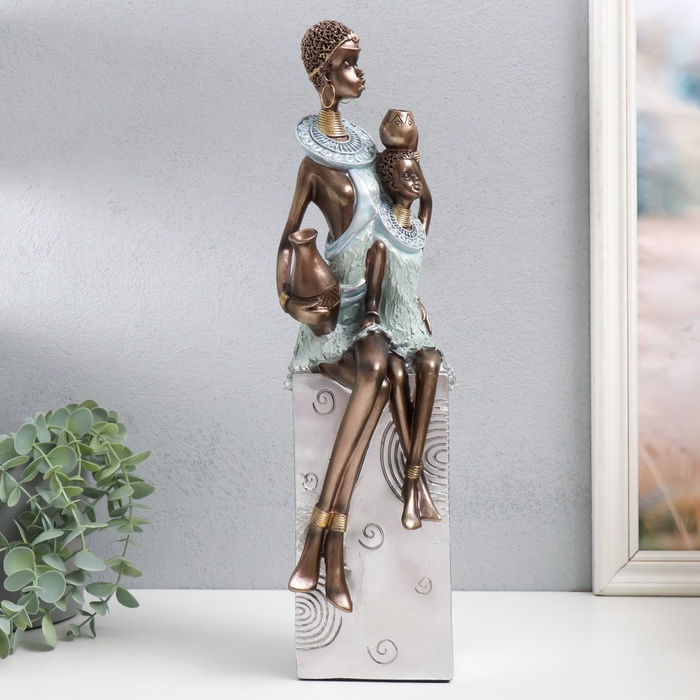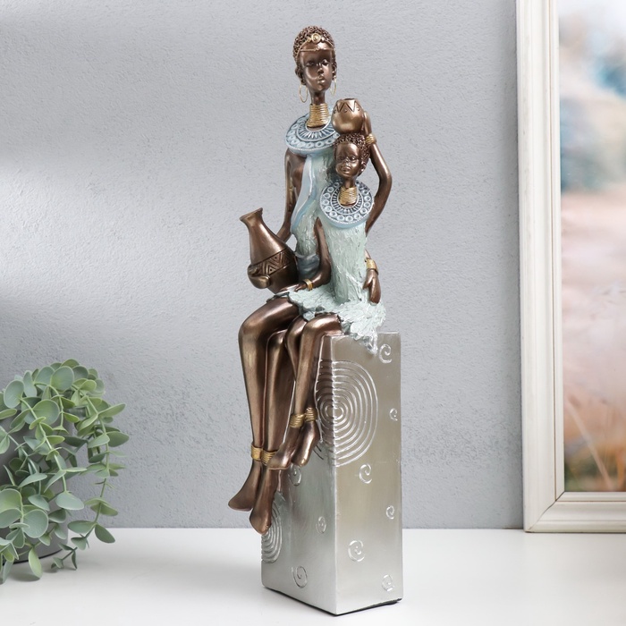 Фигурка полистоун «Африка. Мать и ребёнок», серебро 11.5×12×41 см