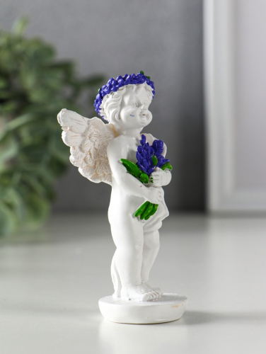 Фигурка полистоун «Ангел с букетом лаванды», бело-фиолетовый, 5.7×3.5×10 см, МИКС