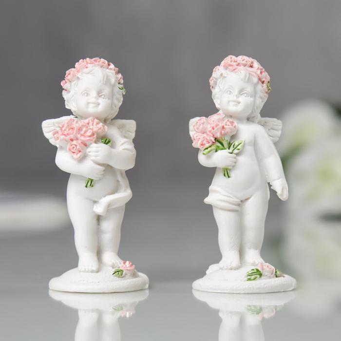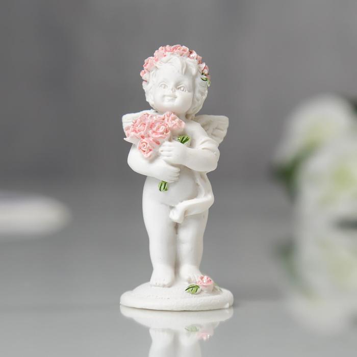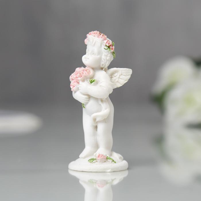 Фигурка полистоун «Ангел в розовом веночке с букетиком», 6.8×2.8×3 см, МИКС