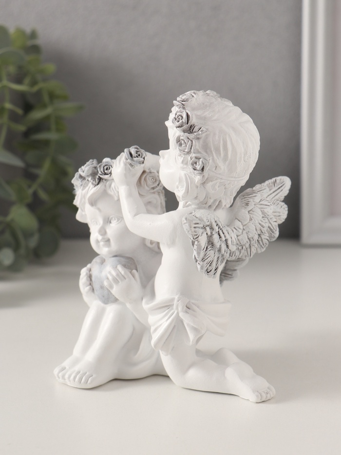Фигурка полистоун «Ангелочки вплетают венок в волосы, с сердцем», бело-серый, 11×8×12.5 см