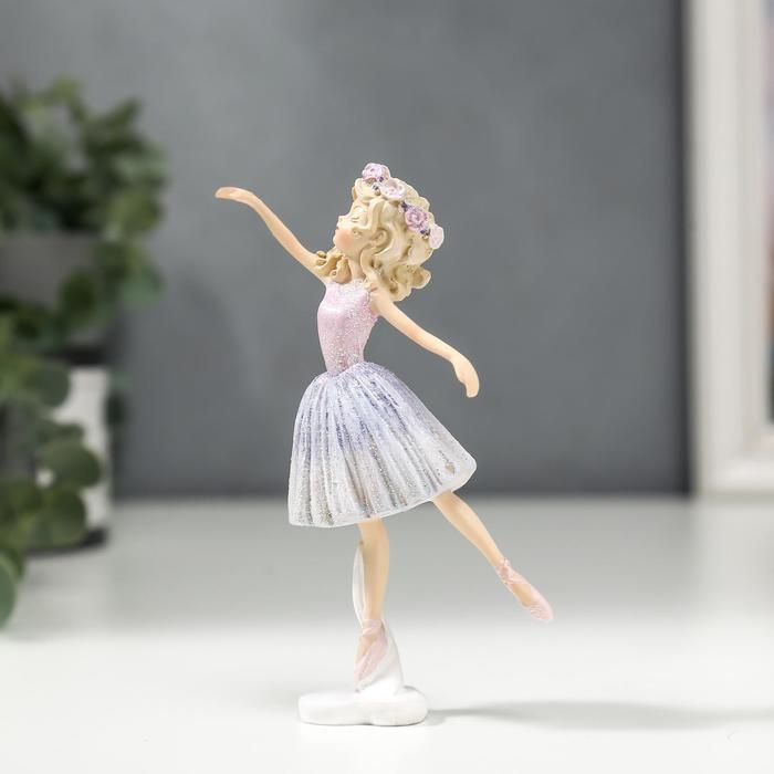 Фигурка полистоун «Балерина с кудрями, в розово-сиреневом платье», 13×3.5×6.5 см