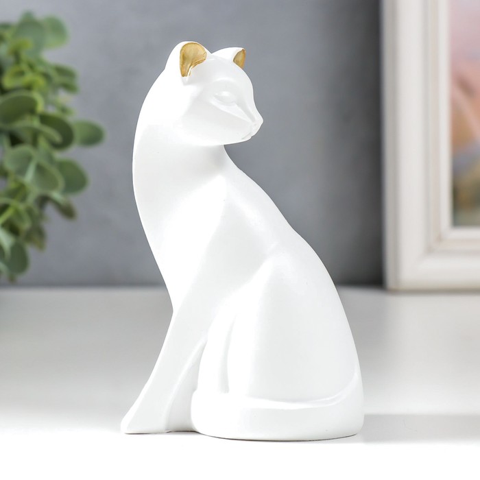Фигурка полистоун «Белая кошка с золотыми ушками», 4×6.5×10.7 см