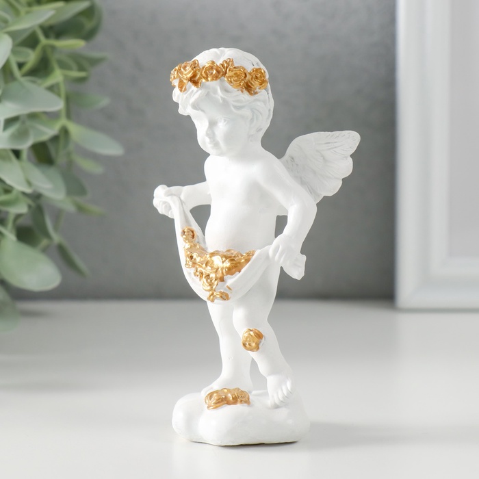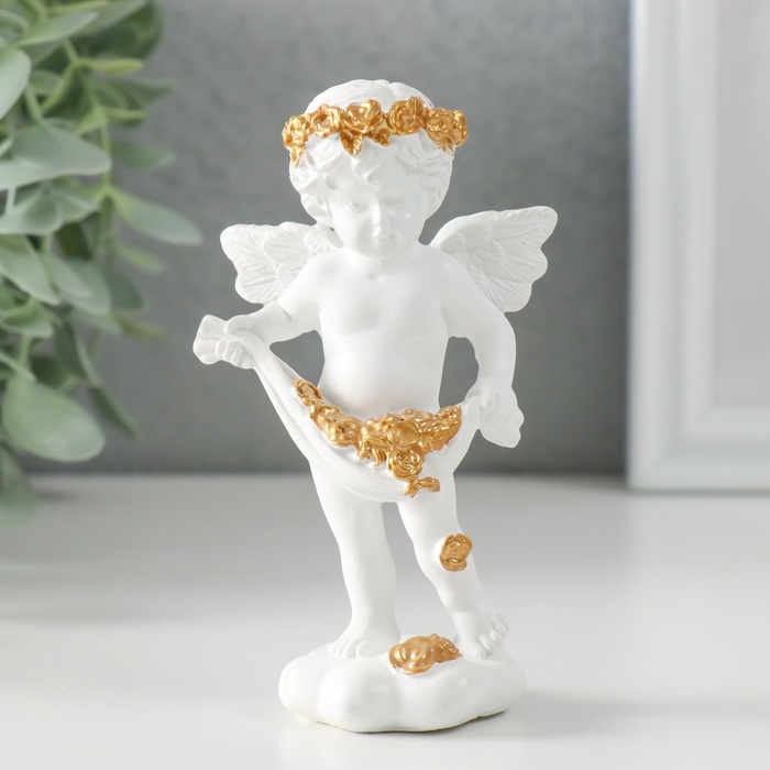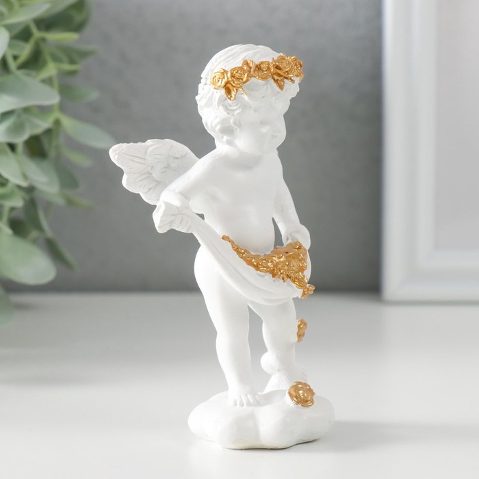 Фигурка полистоун «Белоснежный ангел рассыпает золотые розочки», 6.5×4×11 см