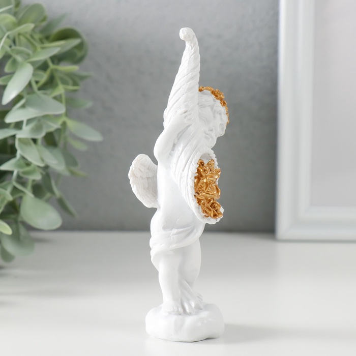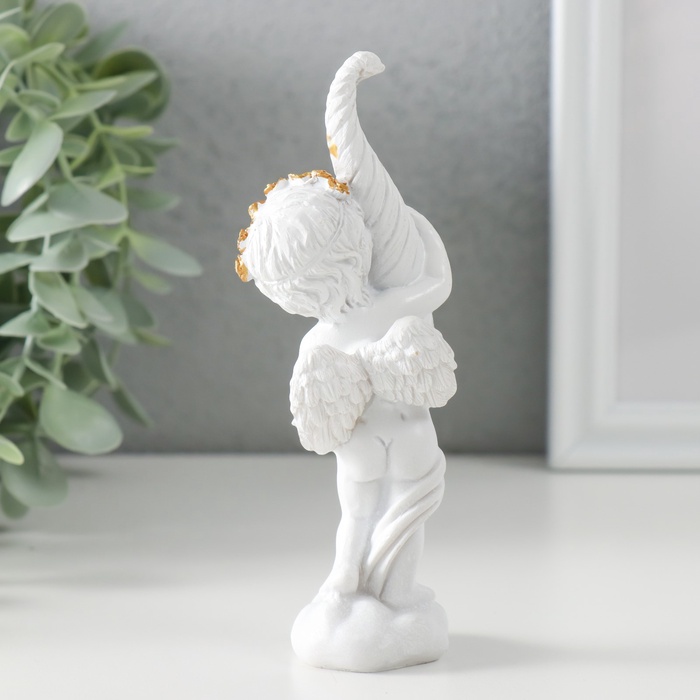 Фигурка полистоун «Белоснежный ангел с рогом с розами», 5.5×4.5×13.5 см