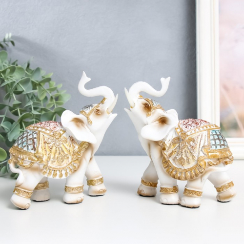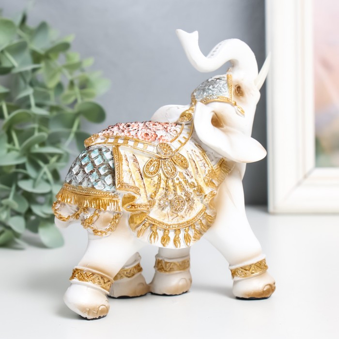 Фигурка полистоун «Белый слон в золотой богатой попоне», 6×11×13 см, МИКС