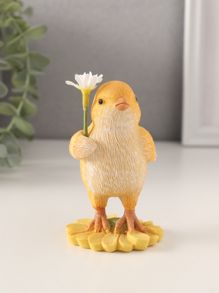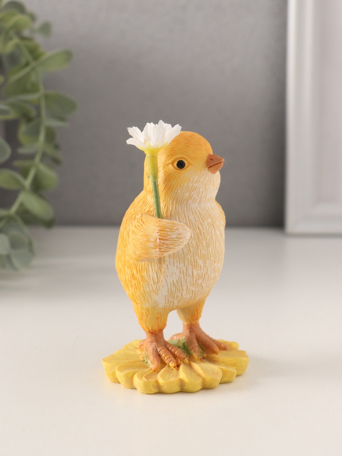 Фигурка полистоун «Цыплёнок с ромашкой», 5.5×5.5×10 см