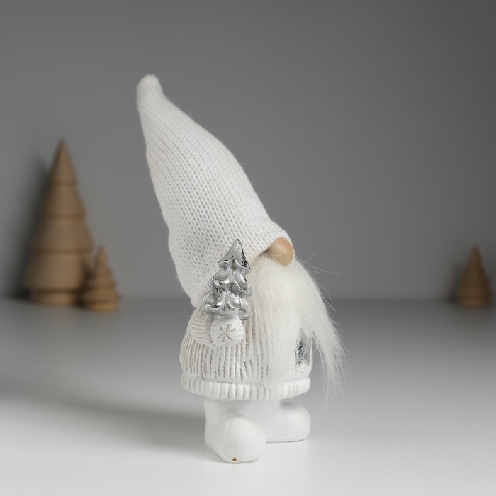 Фигурка полистоун «Дед Мороз в белом вязанном колпаке, с серебристой ёлочкой», 8.5×5×18 см