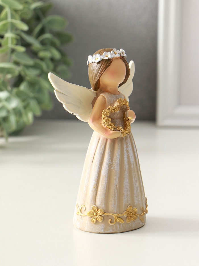 Фигурка полистоун «Девочка-ангел с венком-сердце», 4.5×8×12 см