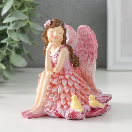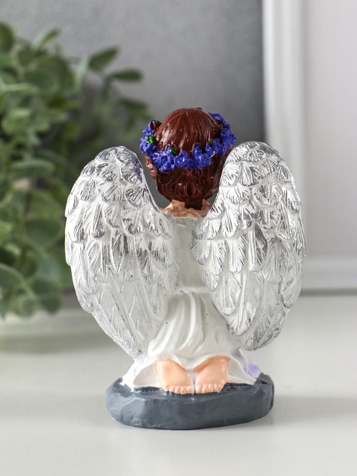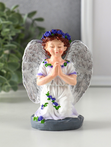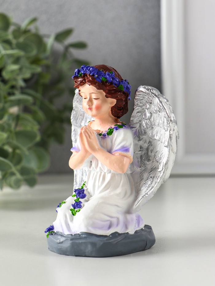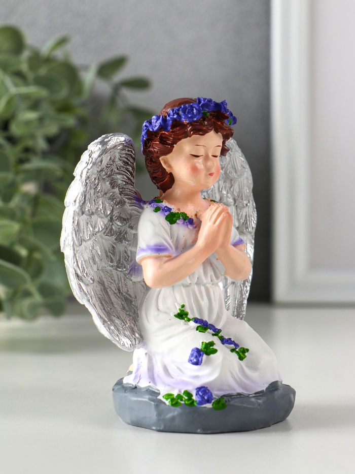 Фигурка полистоун «Девочка-ангел в цветочном платье, венке - молитва», фиолетовый, 8.5×6.2×10.5 см
