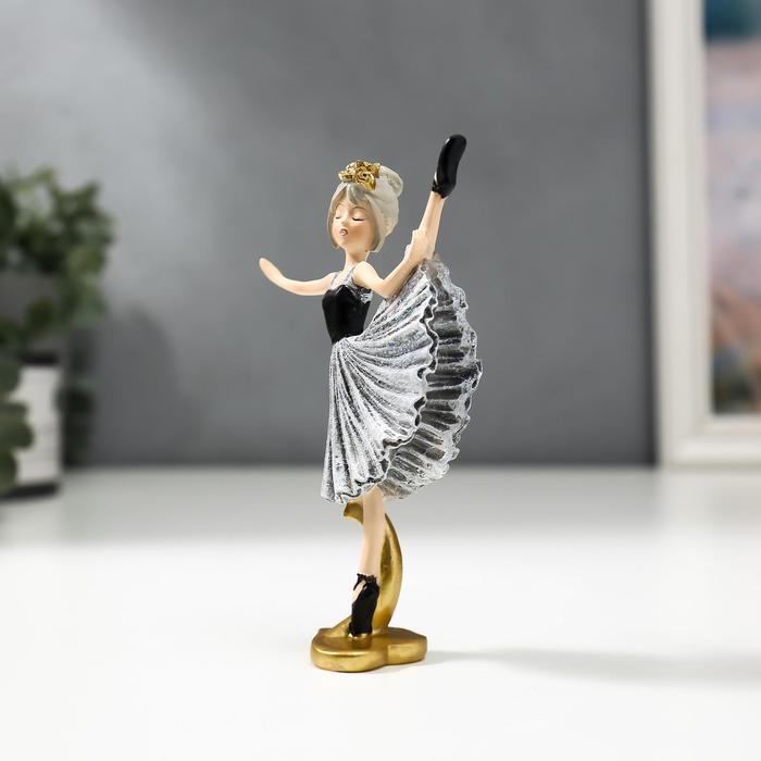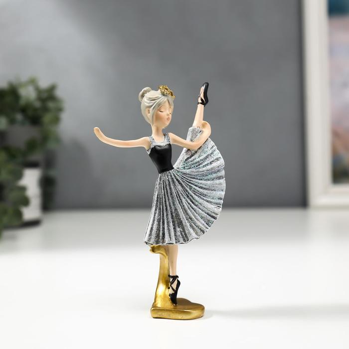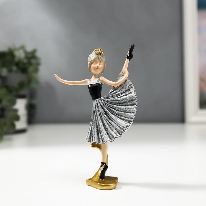 Фигурка полистоун «Девочка-балерина в серо-чёрном платье и чёрных пуантах», 13×3×8 см