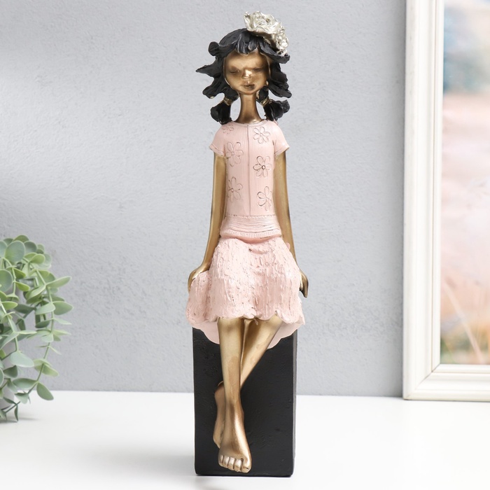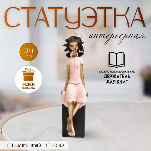 Скульптура запечатлела мимолётный момент беззаботности. Девочка с цветком в волосах на кубе — это образ юной грации и чистоты. Статуэтка привносит в пространство умиротворение и напоминает о самом светлом. Её лаконичная форма и пастельная палитра легко впишутся в любую обстановку, делая её чуть более одушевлённой и личной.