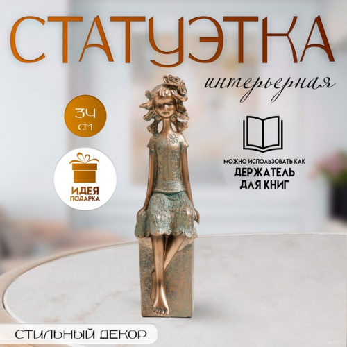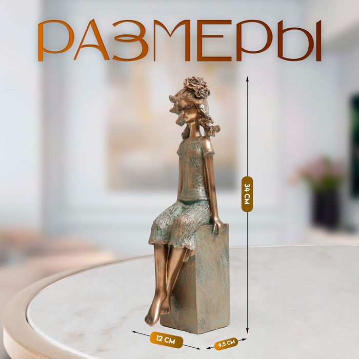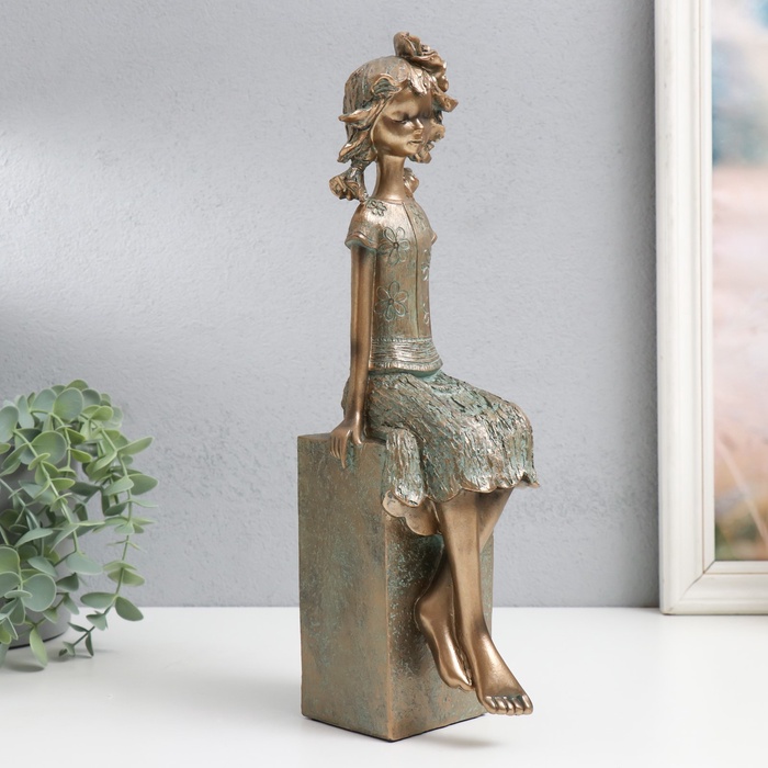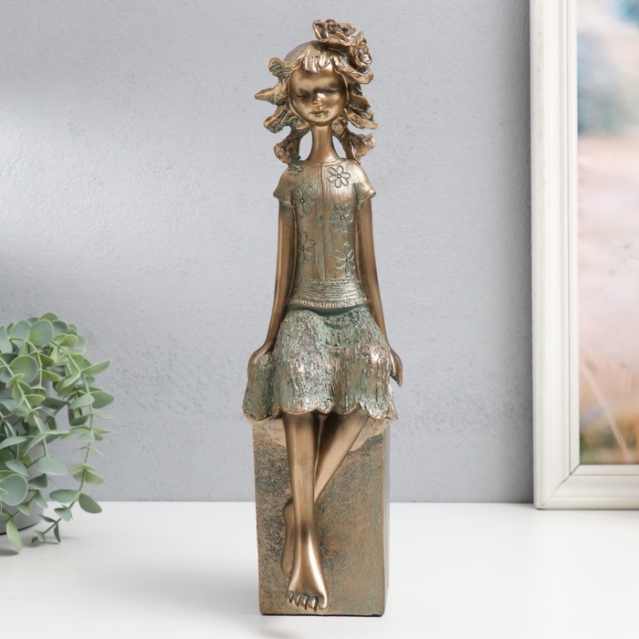 Фигурка полистоун «Девочка на кубе, с цветком в волоса×», под бронзу, 9.5×12×34 см