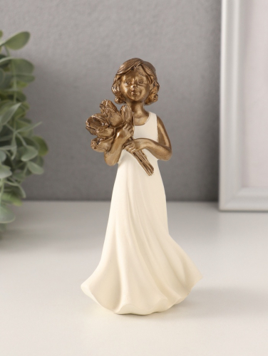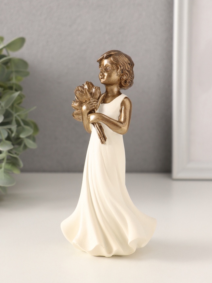 Фигурка полистоун «Девочка с букетом тюльпанов», 7.5×5×15 см