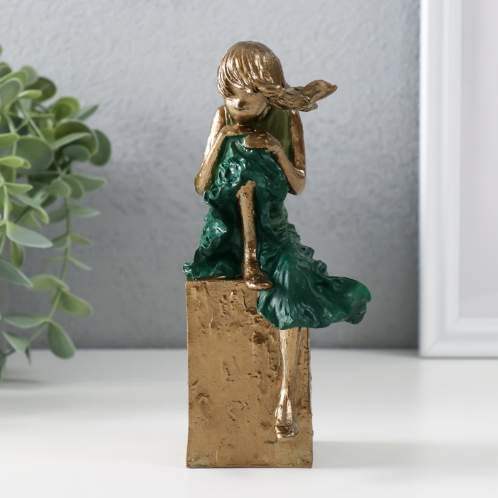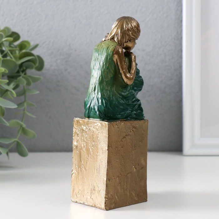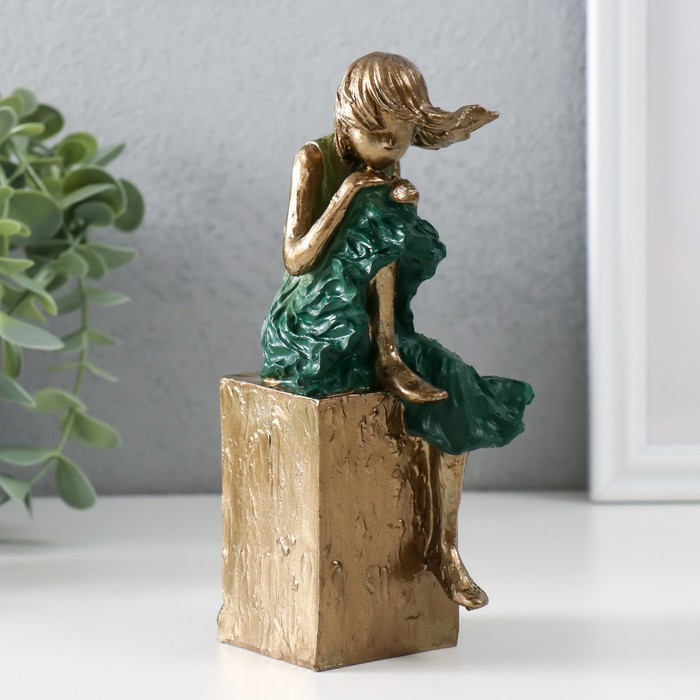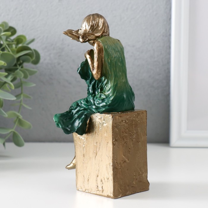 Фигурка полистоун «Девочка в платье морская, волна, сидящая, на, куба», бронза, 7.5×7×16 см