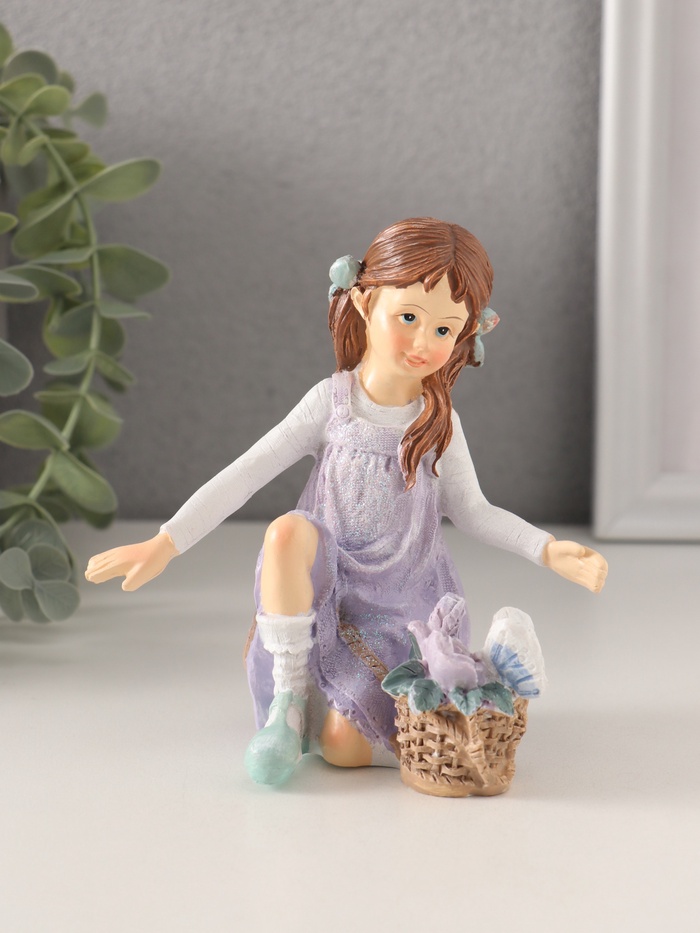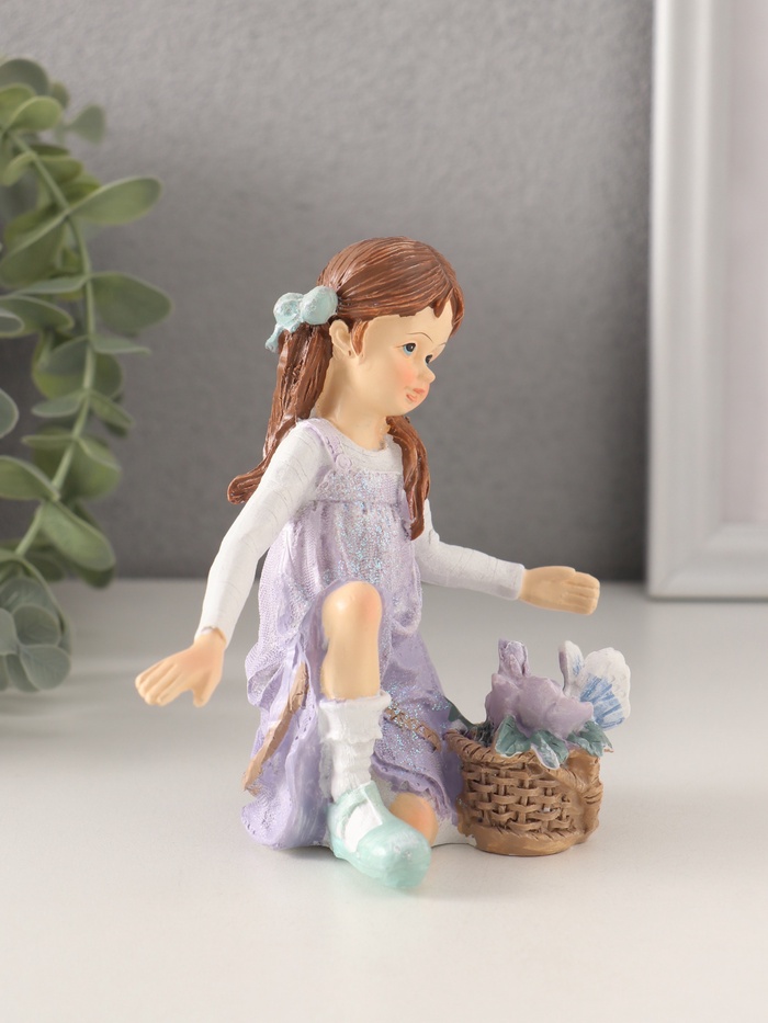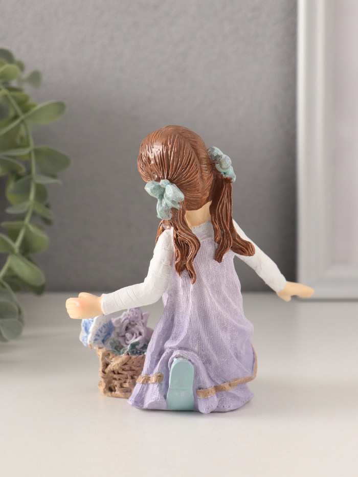 Фигурка полистоун «Девочка в сиреневом сарафане с корзинкой цветов», 11×6.5×12 см