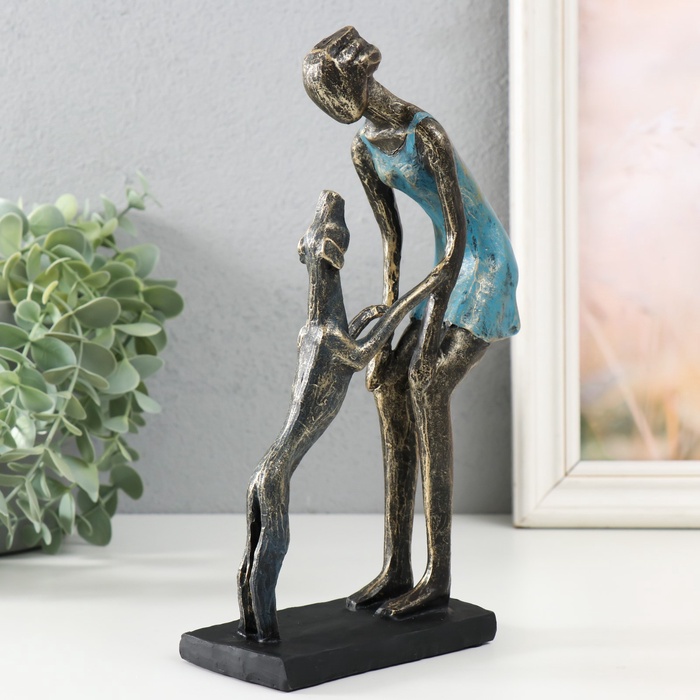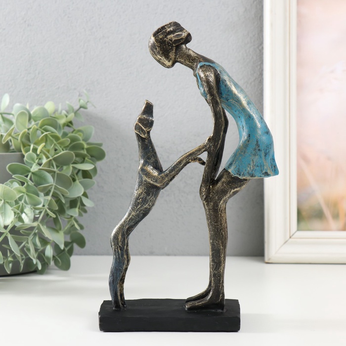 Эта полистоуновая статуэтка с металлическим отливом изображает трогательный момент дружбы. Девушка в платье нежно-голубого оттенка склонилась к своей собаке, создавая атмосферу спокойствия и безмятежности. Универсальная тематика делает фигурку идеальным акцентом для интерьера в классическом или современном стиле.