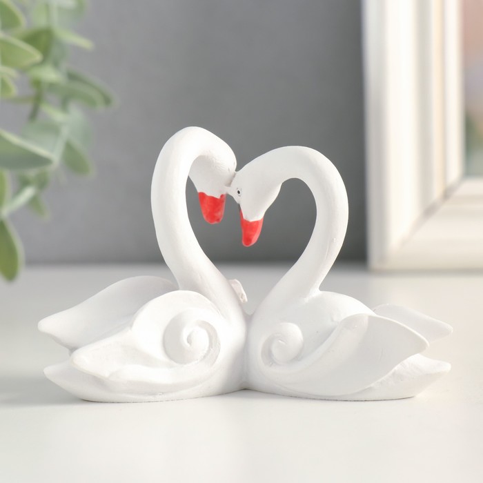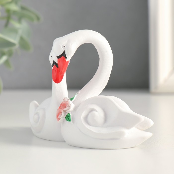 Фигурка полистоун «Два белых лебедя с розами», 3.2×9.5×6.2 см
