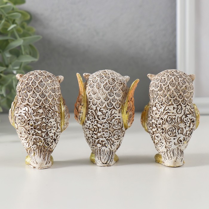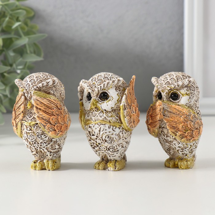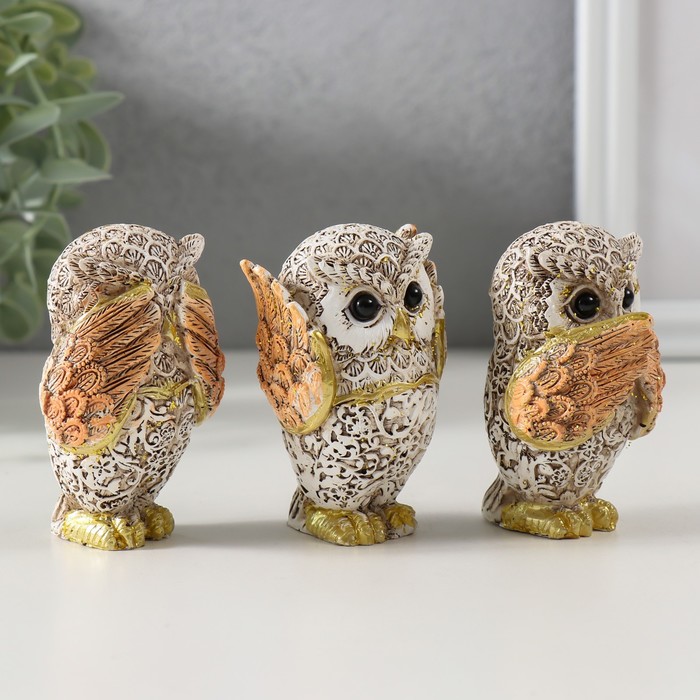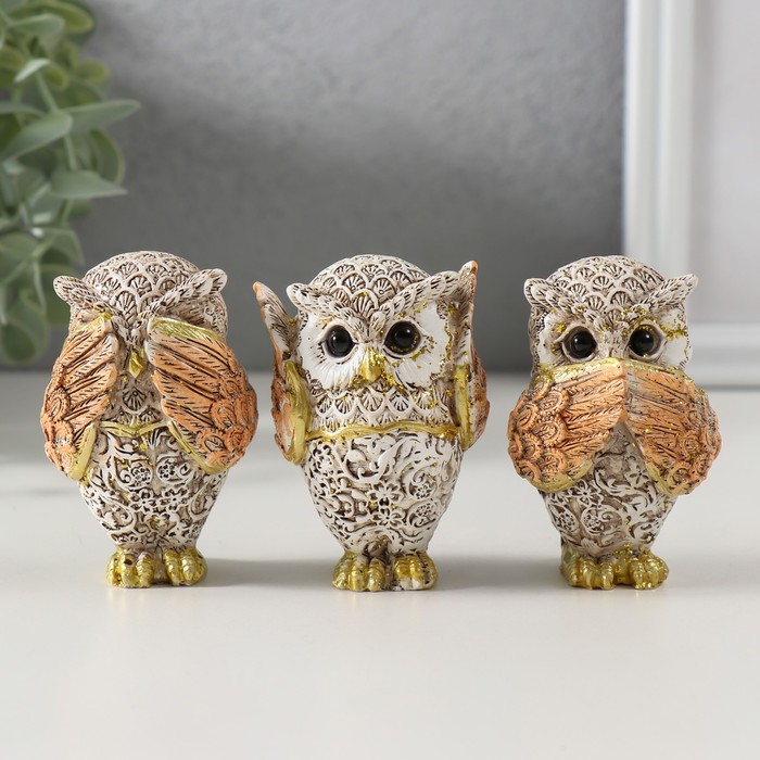 Фигурка полистоун «Филин: не вижу, не слышу, не скажу», беж с золотом, 7×4.5×3.5 см, МИКС