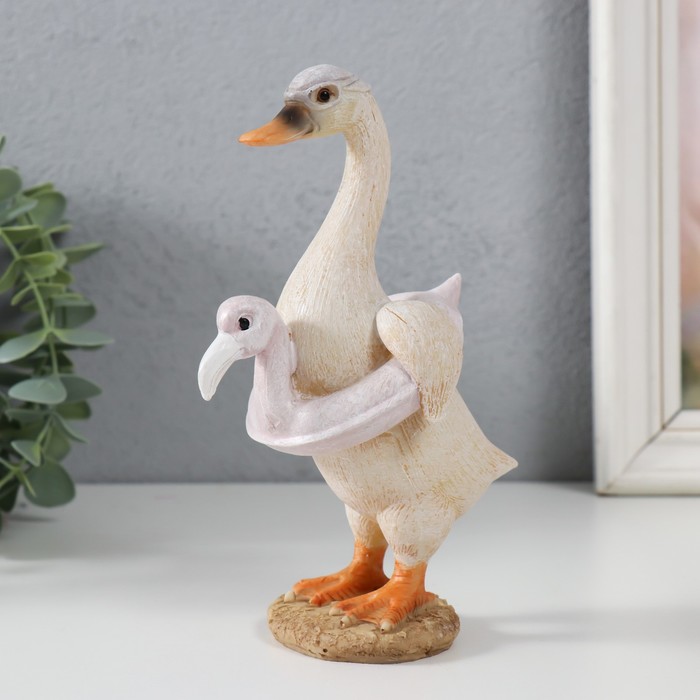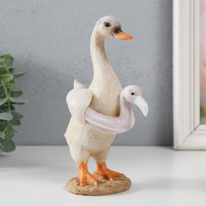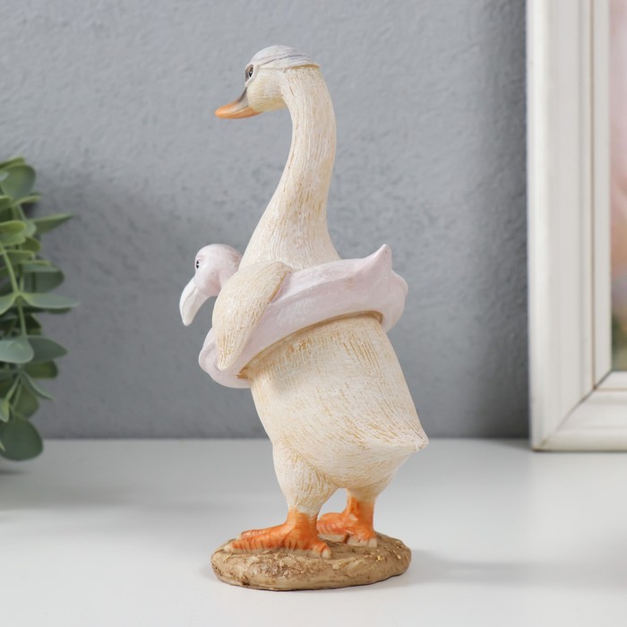 Фигурка полистоун «Гусь в надувном круге: фламинго», 10.5×7.5×16.5 см
