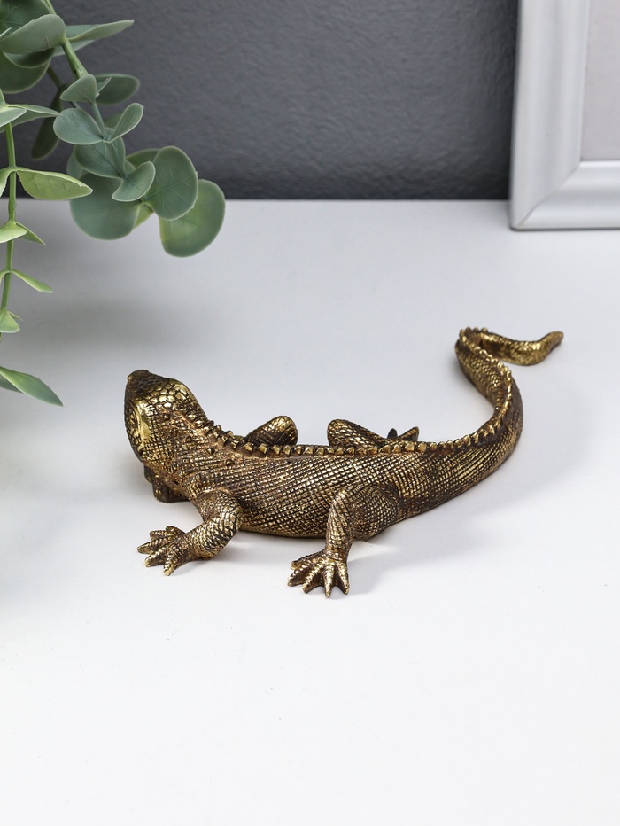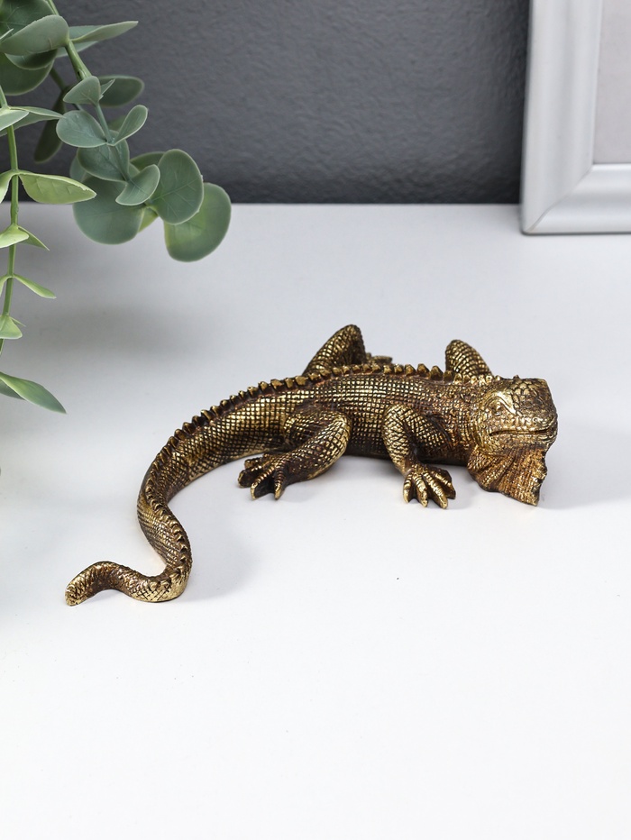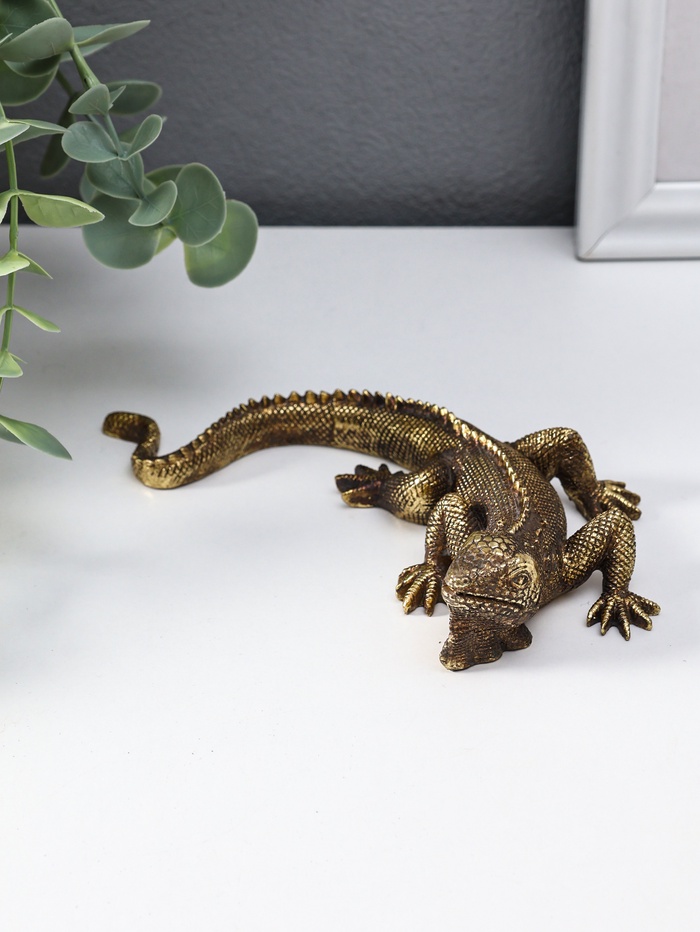 Фигурка полистоун «Игуана», под золото, 15.5×11×3.2 см