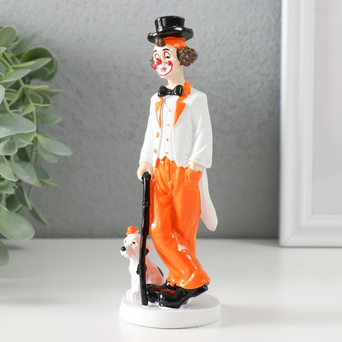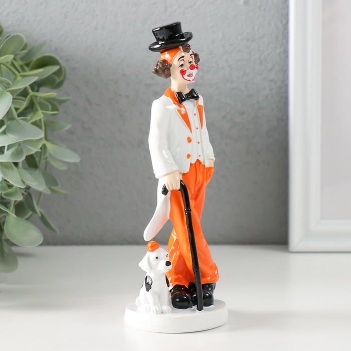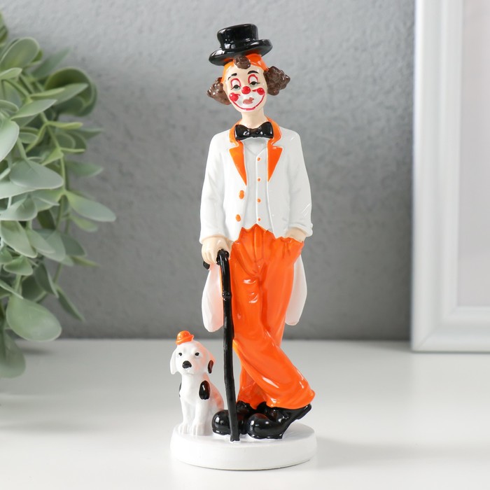 Фигурка полистоун «Клоун с тростью и пёсиком», бело-оранжевый, 5×5×15 см