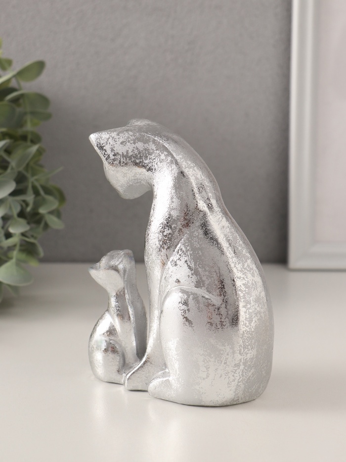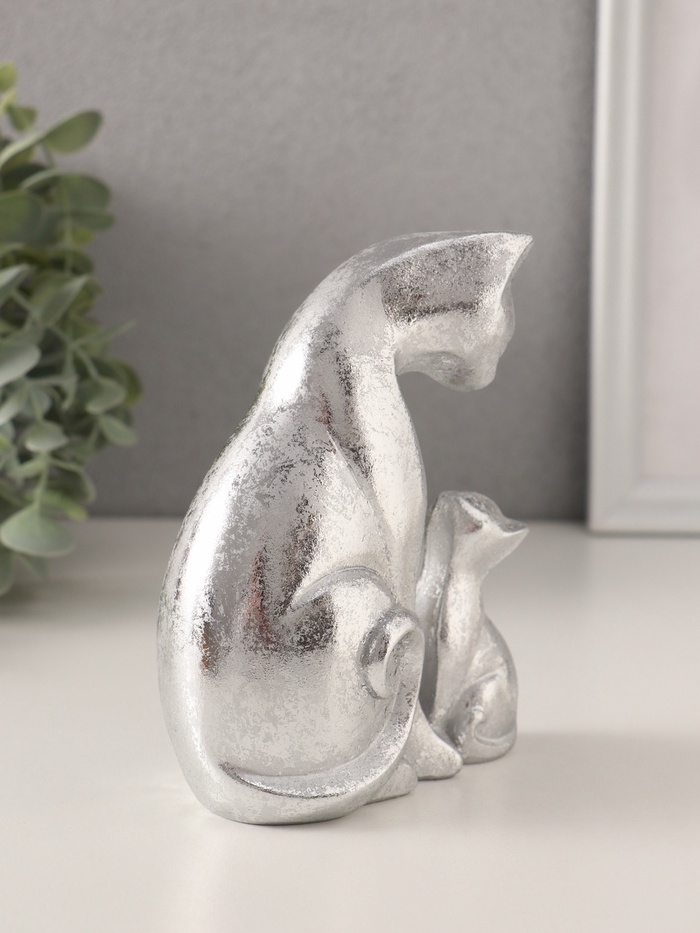 Фигурка полистоун «Кошка с котёнком», серебро, 10×6×13.5 см