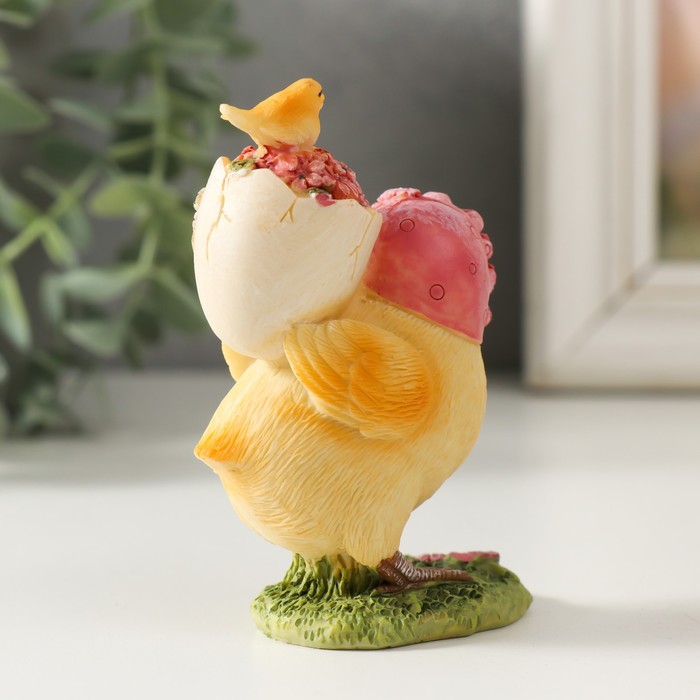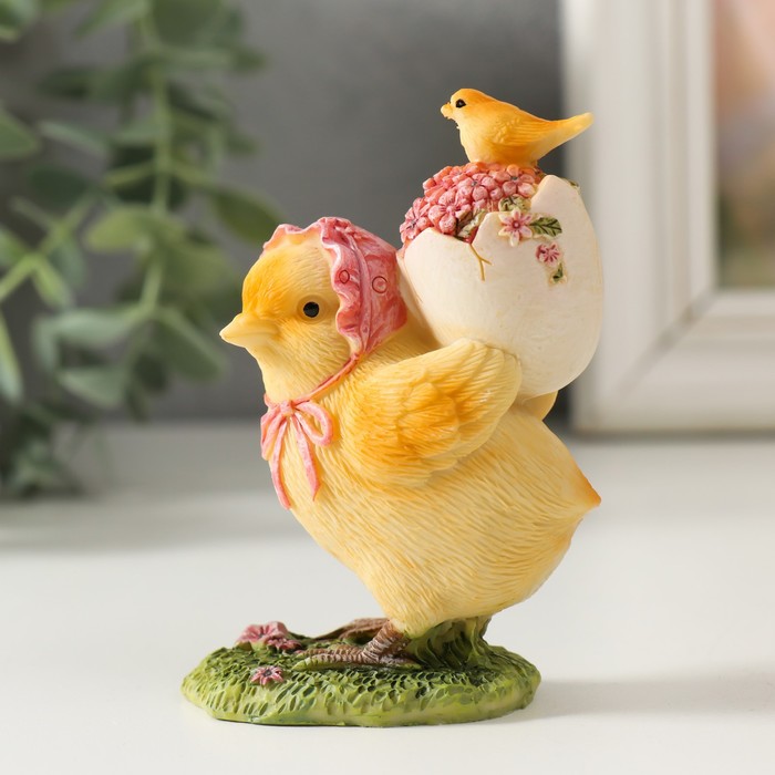 Фигурка полистоун «Курочка в чепчике, несет цыпленка в скорлупе с цветами», 6.5×4×9 см