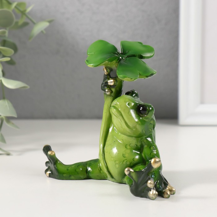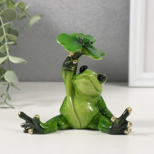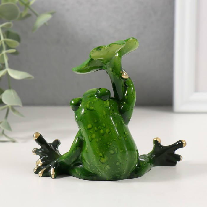 Фигурка полистоун лак «Лягушонок сидит под листиком», 8.8×5.5×8.5 см