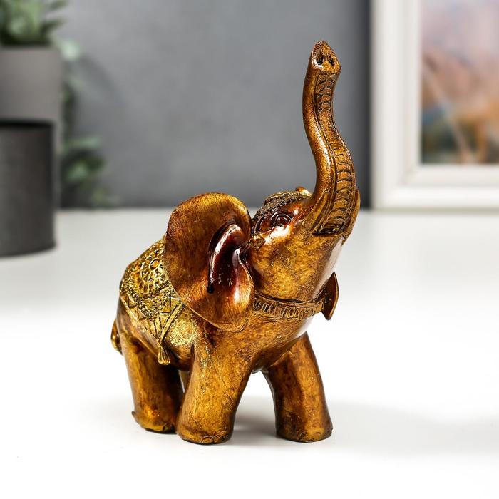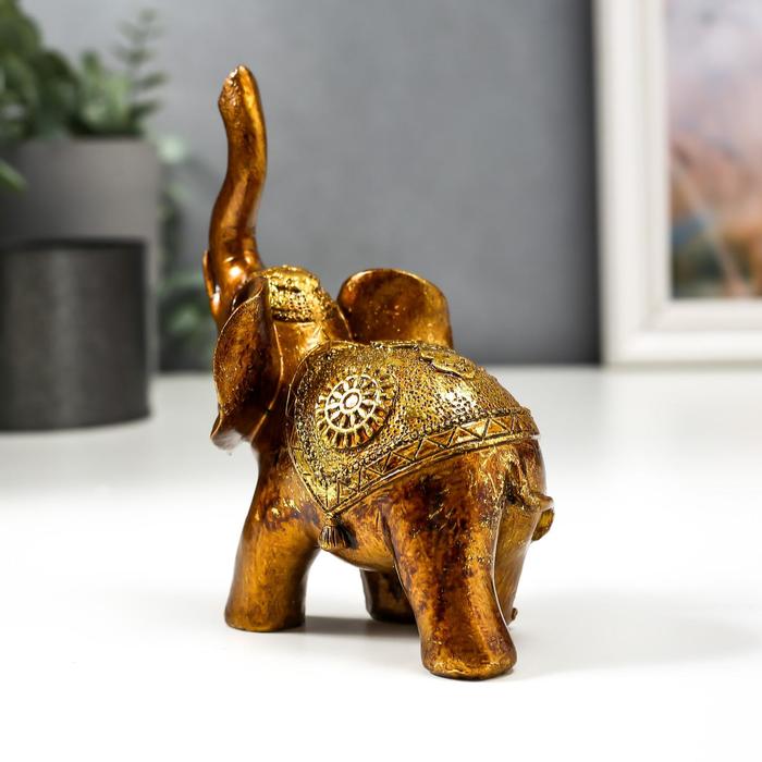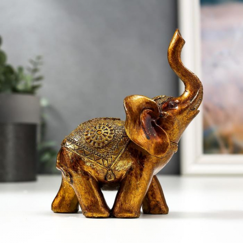 Фигурка полистоун лак «Слон в золотой попоне с узорами», 13×11×6.8 см