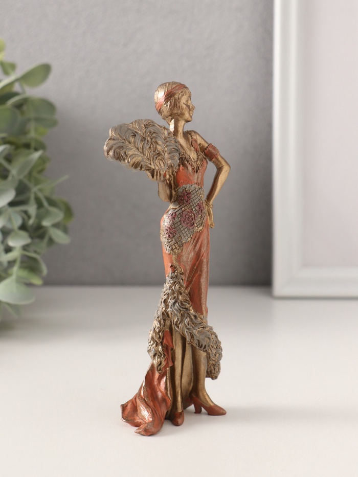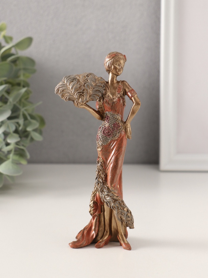 Фигурка полистоун «Леди в платье 20-30-х годов со страусиным веером», 6.5×4×15 см