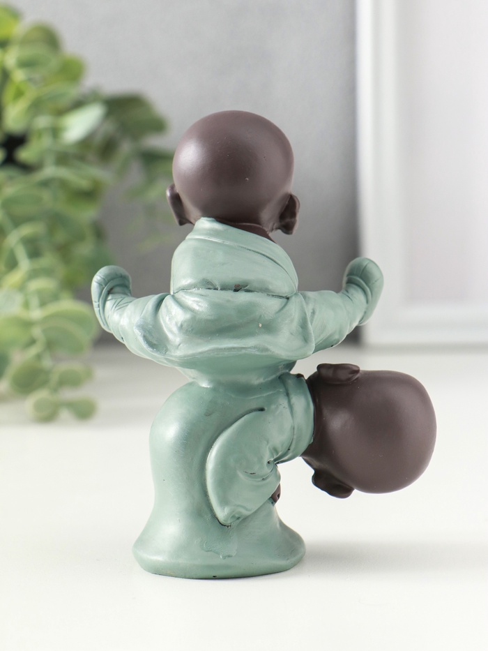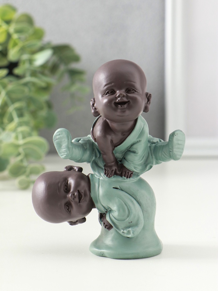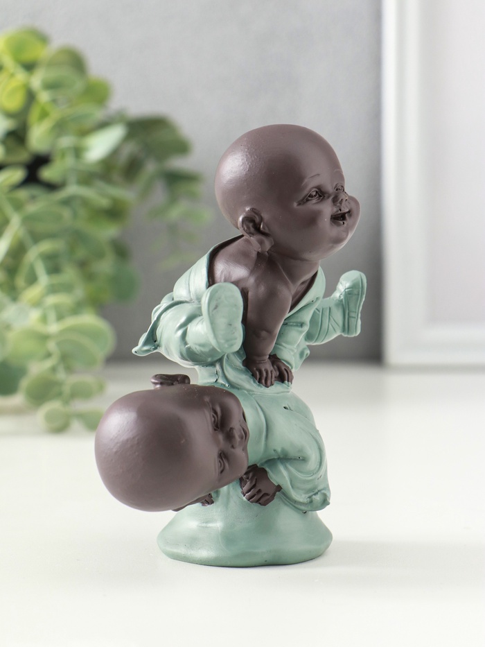 Фигурка полистоун «Маленькие будды - игра в чехарду», зелёно-коричневый, 4.7×9.3×11 см