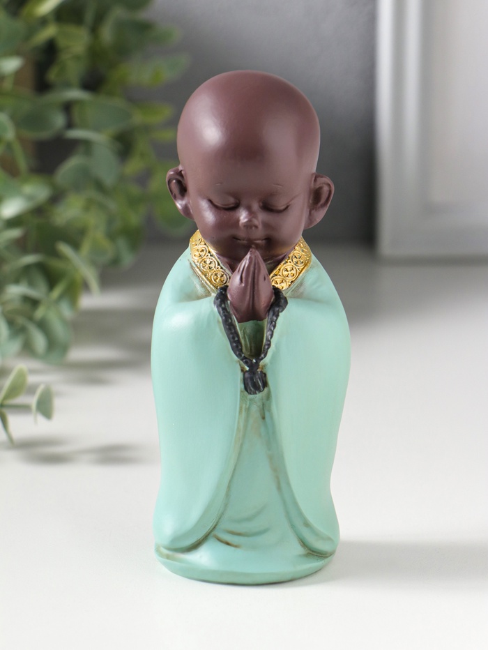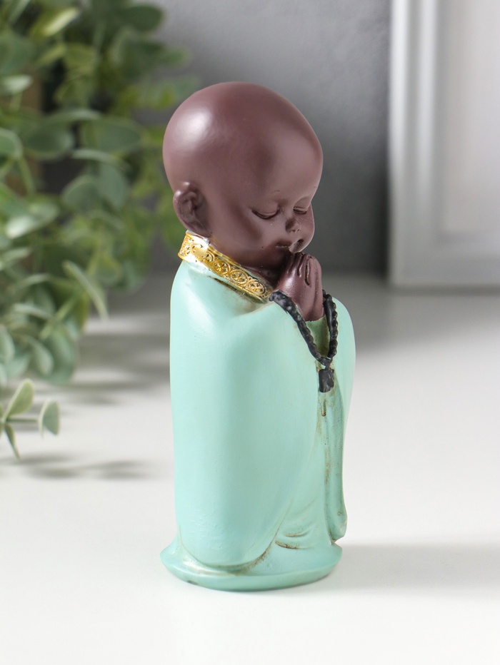 Фигурка полистоун «Маленький Будда в бирюзовом одеянии - приветствие», 5×5×12.5 см
