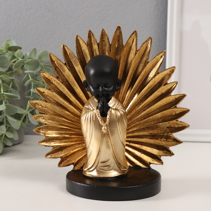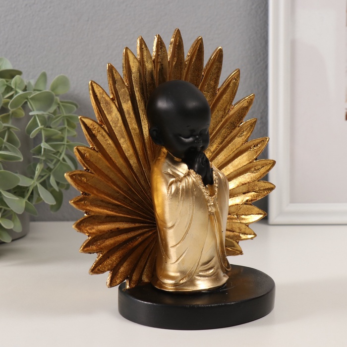 Фигурка полистоун «Маленький Хотей - молитва. Пальмовый лист», золото и чёрный, 18×9×18 см