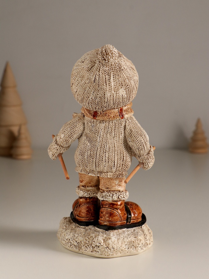 Фигурка полистоун «Малыш в вязаном наряде на мини-лыжах», 8.5×8×17.5 см