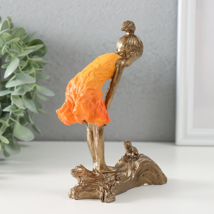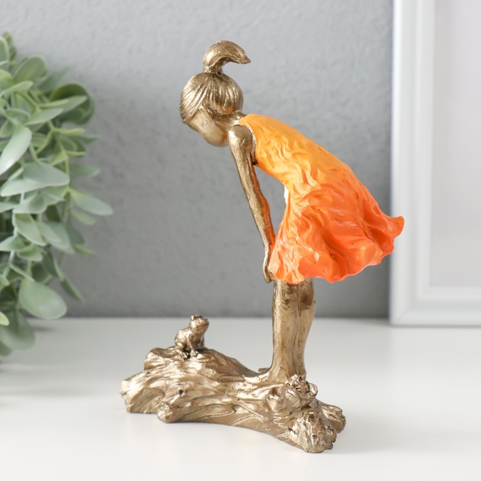 Фигурка полистоун «Малышка и лягушонок», под бронзу, оранжевый, 12×5×15 см