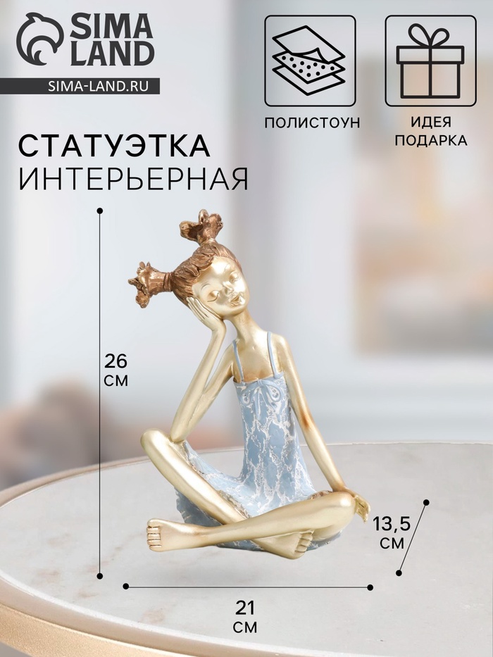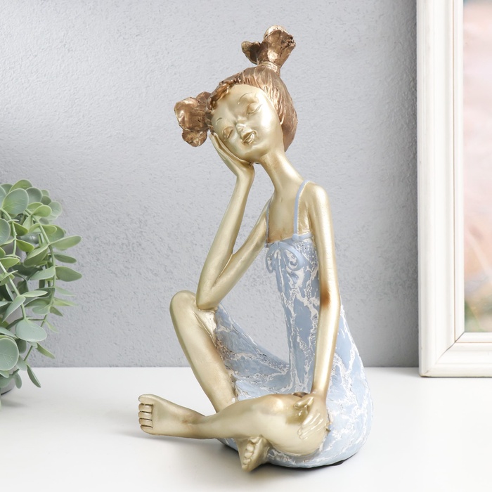Эта полистоуновая статуэтка девочки с двумя хвостиками станет изящным акцентом в интерьере. Нежная бело-золотая палитра с голубыми деталями создаёт ощущение лёгкости и праздника. Универсальный дизайн делает фигурку идеальным подарком для создания уютной атмосферы в доме.