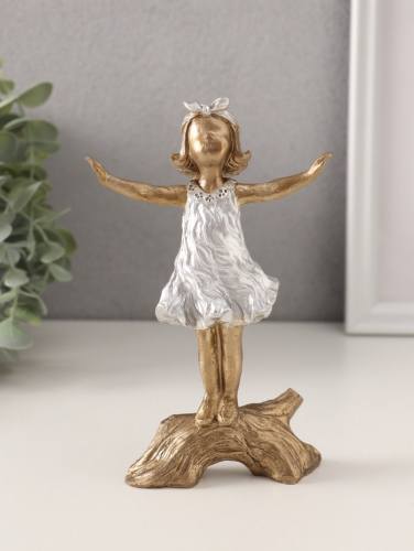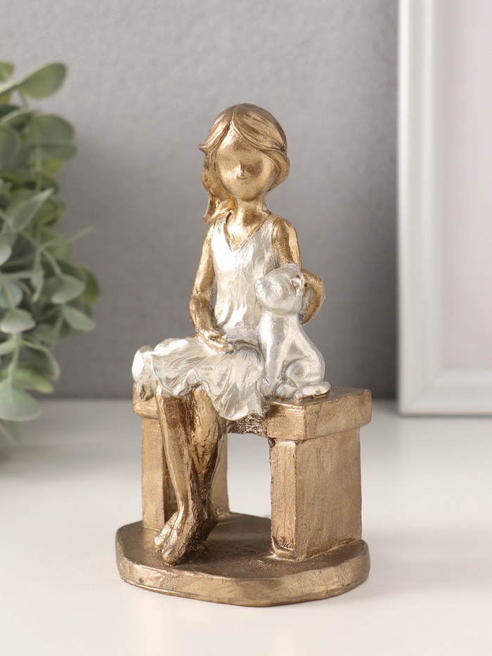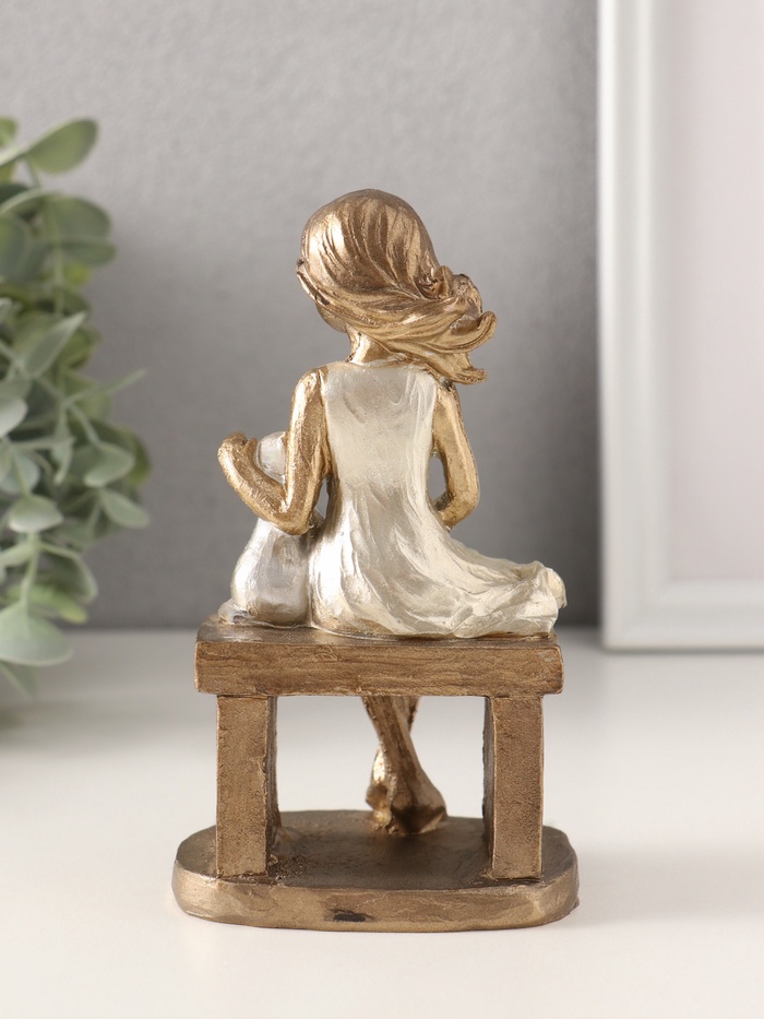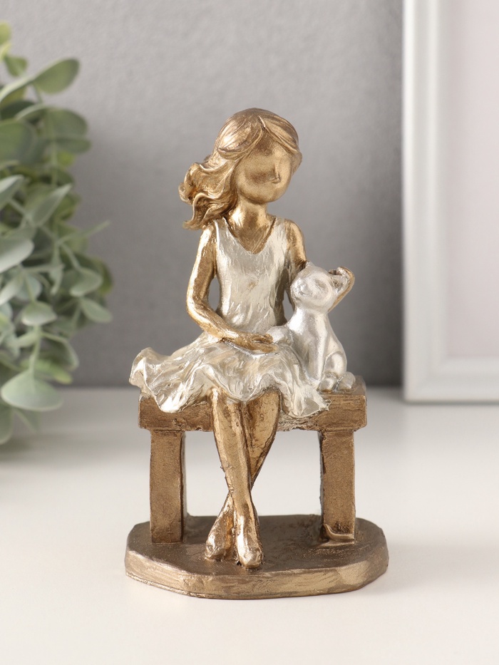 Фигурка полистоун «Малышка с котиком на скамеечке», бронза с серебром, 8×6.5×13.5 см