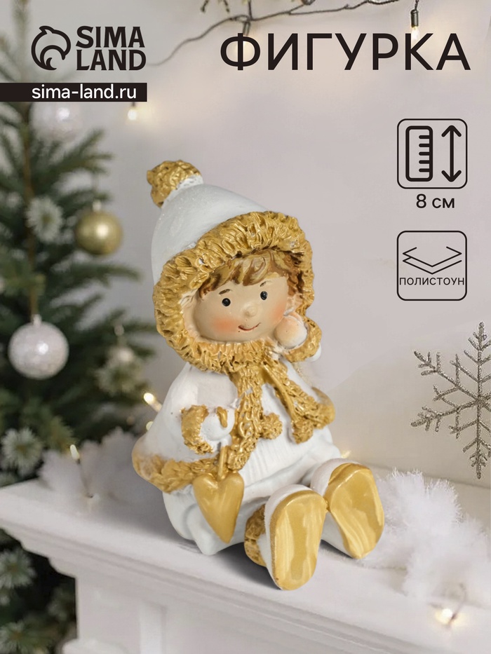 Фигурка полистоун «Малышка в белой шубке, с сердечком сидит», 5×5.5×8 см