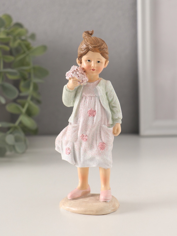 Фигурка полистоун «Малышка в розовом платье и зелёной кофточке, с букетиком», 5×4×12.5 см