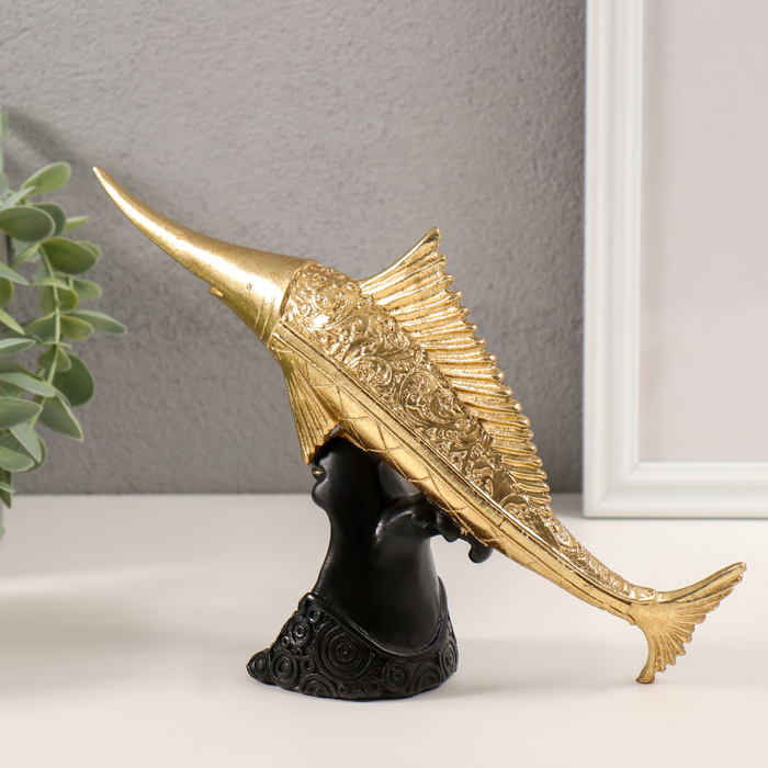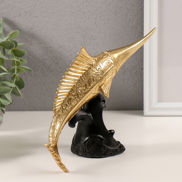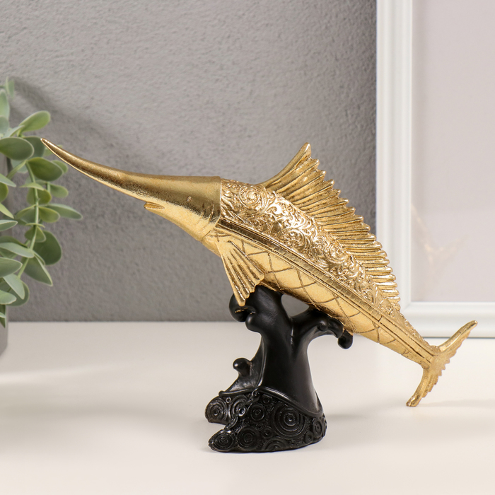 Фигурка полистоун «Меч-рыба золотая с узорами», 23×7×16 см