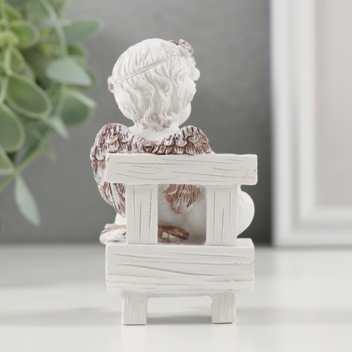 Фигурка полистоун «Милый ангелочек на скамье с сердцем», кофейный венок, 5×5×9 см