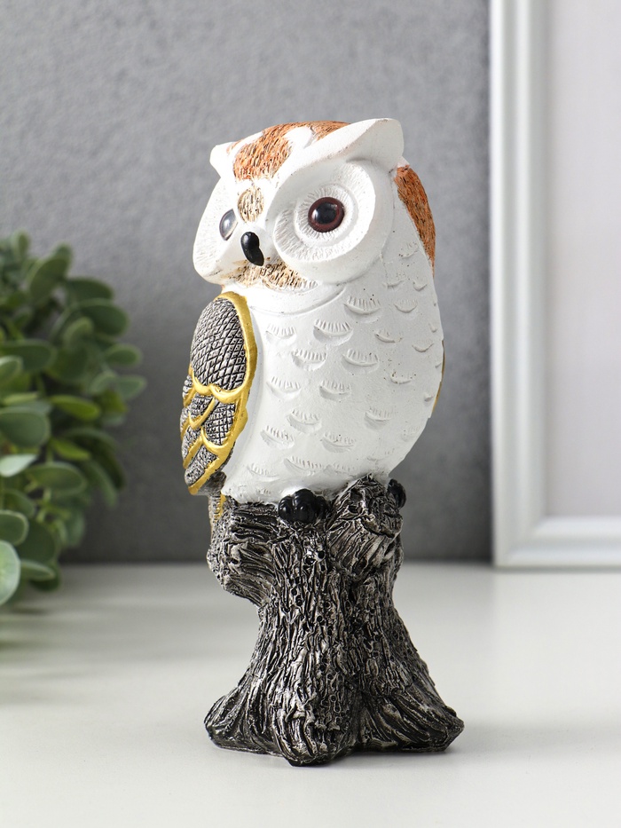 Фигурка полистоун «Мудрая сова Мадлен», белая с золотом, 15×7.5×8 см